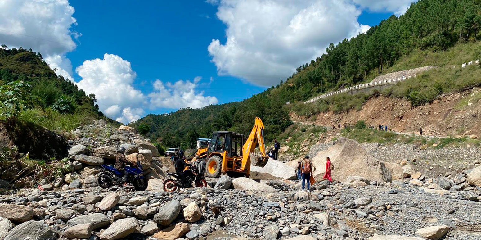 • काभ्रेपलाञ्चोक । असोज १८ र १९ गते अविरल वर्षापछि रोशीखोलामा आएको बाढीले बगाएको बिपी राजमार्ग डाइभर्सन निर्माण थालिएको छ । नमोबुद्ध नगरपालिका, रोशी गाउँपालिका र महाभारत गाउँपालिकाका जनप्रतिनिधिहरूको पहलमा सडक विभागले सोमबार डाइभर्सन निर्माण थालेको हो । डाइभर्सन बनाएर सडक सञ्चालनमा ल्याउन कम्तीमा चार दिन लाग्ने यातायात मन्त्रालयले जनाएको छ ।